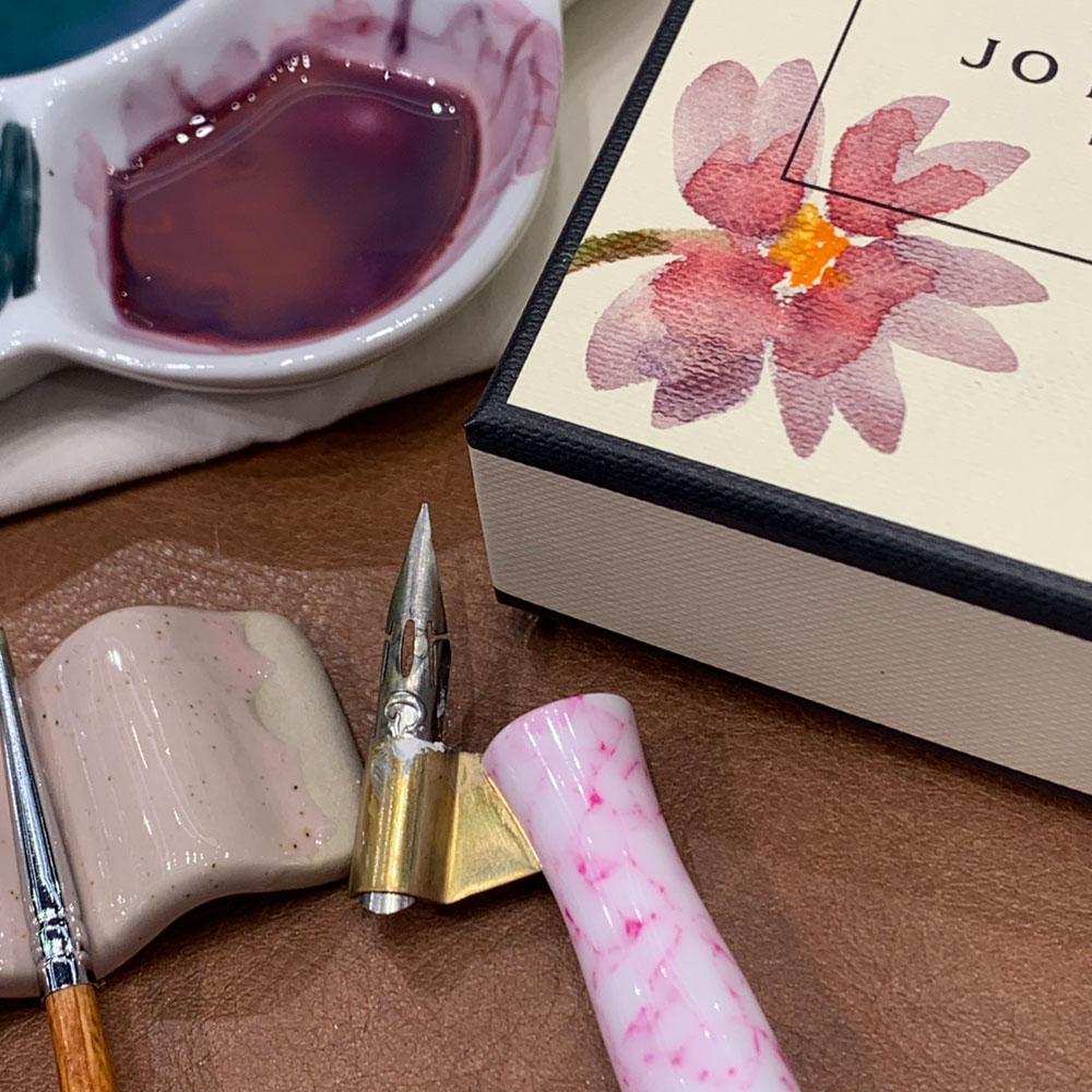 Hand-painted perfume boxes at a Holiday-themed event for Jo Malone London