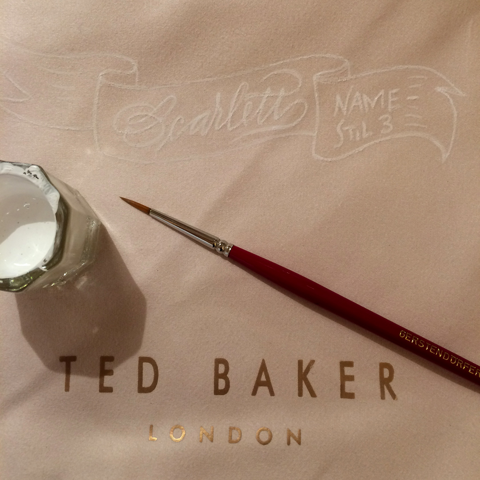 Personalization of suede shoe bags for Ted Baker London at the Konen Munich